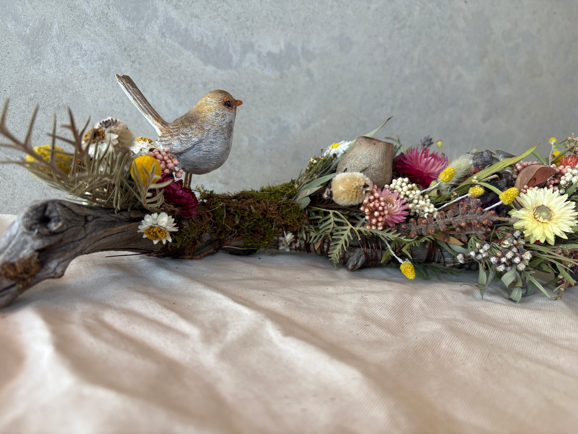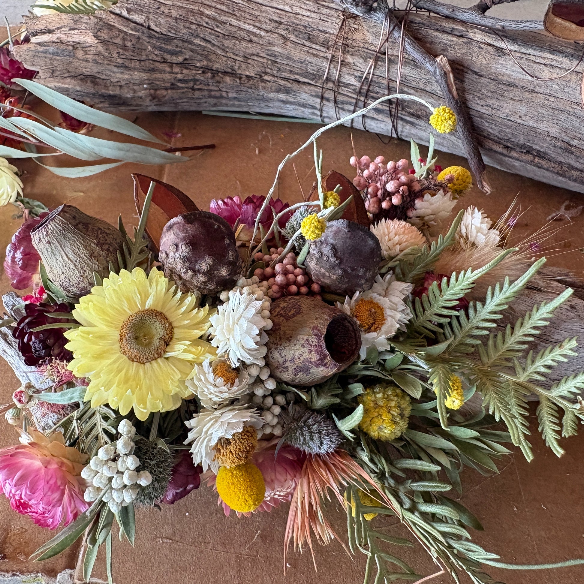 Discover unique botanical art crafted by hand using naturally dried flowers grown on our Victoria farm. Each piece features one-of-a-kind arrangements on foraged branches, adding a touch of rustic charm to your space. Created with care and a deep connection to nature—order today! I will reach out to discuss any customization requests for your order.