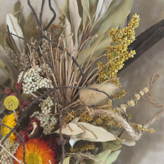 Native botanicals including eucalyptus, everlasting daisies, and banksia are individually placed to capture the bold, living colours of our landscape.