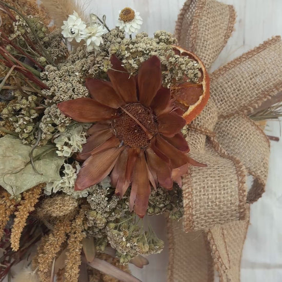 Measuring 35–45 cm across, it's sized perfectly for indoor display and will continue to evolve beautifully as the botanicals dry naturally over time.