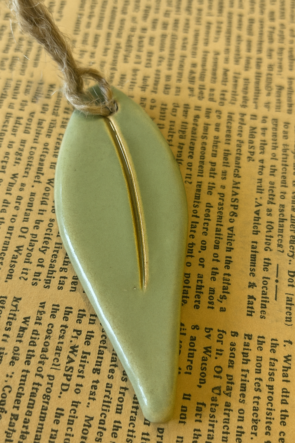 🪶 A one-of-a-kind ceramic pendant by Warby Range Pottery, adding a personal, artisanal touch.