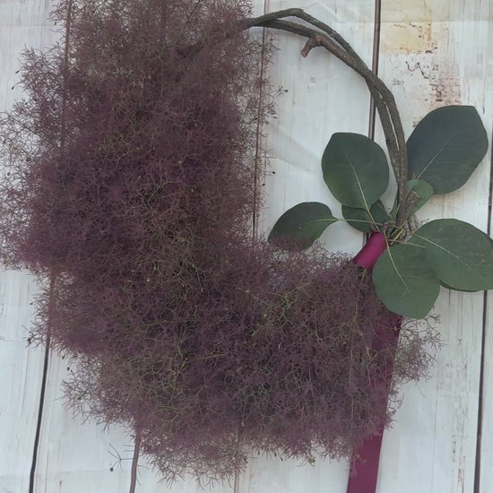 Introducing a handcrafted wreath from our exclusive weekly Christmas collection. Each piece features fresh smoke bush arranged on a natural woven base and tied with a striking magenta ribbon. The Large size spans 35–45 cm, making it ideal for indoor spaces where you can enjoy its evolving beauty. As the fresh and dried botanicals cure, the colours will naturally shift and deepen, creating a living artwork in your home. Available for local delivery and pickup only.